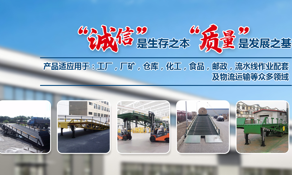 隨著國內(nèi)及國際市場需求的不斷擴大,公司也在不斷引進(jìn)國內(nèi)外的先進(jìn)技術(shù)來充實自身。公司先后設(shè)計研發(fā)出了,大小型貨車配裝的:汽車液壓尾板,叉車裝卸貨用的:移動式登車橋;庫房外貨臺配裝的:固定式液壓升降平臺(貨臺高度液壓調(diào)節(jié)板);庫房內(nèi)外高層輸送貨物:導(dǎo)軌式升降貨梯,液壓升降平臺,旋轉(zhuǎn)液壓升降臺,及百噸位大型升降臺,等多種的先進(jìn)裝卸裝備,適應(yīng)用于:工廠,廠礦,倉庫,化工,食品,郵政,流水線作業(yè)配套及物流運輸?shù)缺姸囝I(lǐng)域。